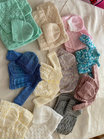 A BIG THANK YOU to all our lovely knitters I took all the baby blankets (60), cuddle squares (106), hats (87) & little jackets, cardigans & dresses (31 plus a pair of bootees) along to the Neonatal Unit at Wythenshawe Hospital on Sunday (8/12/24). They were very gratefully received.